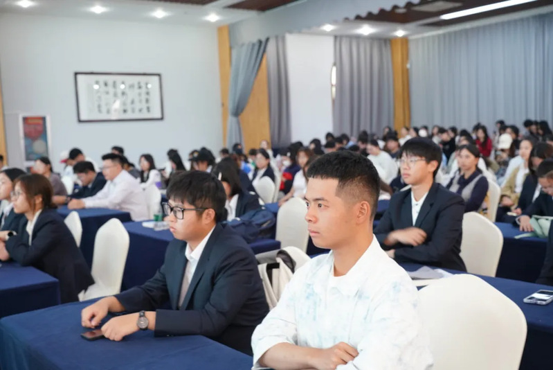 林梦校友讲述了自己的在校经历与工作经验。因自身从事外贸工作,她认为外语在今后的工作中起到重要作用。对于跨专业就业,她有着独到的见解,并建议同学们提前了解并参与招会等与职业规划相关的信息。