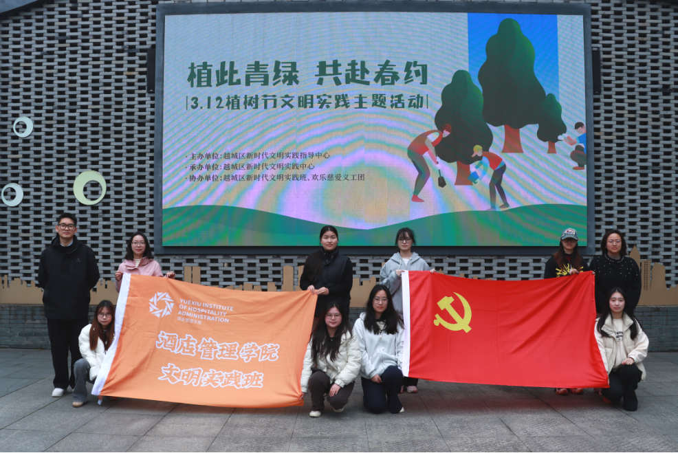 3月11日,浙江越秀外国语学院酒店管理学院党委学生第一支部和第二支部的同学们到现场参与了在越城区新时代文明实践指导中心举办的的 “播种春天·共筑绿意”植树活动。春风不负约定,绿意点亮越城,青春力量赋能环保,让我们一同回顾这场充满欢笑与意义的绿色行动