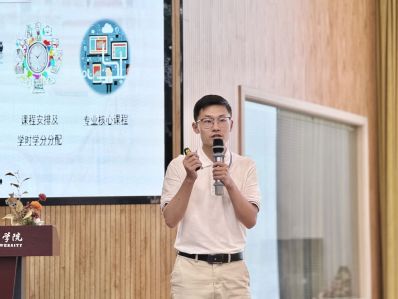 会展经济与管理系主任陆炎老师从 “培养目标、培养规划、课程安排、教学硬件设施” 四个维度,为新生们介绍会展人才培养方案。鼓励大家积极参加学科竞赛,增强自己的实践能力。