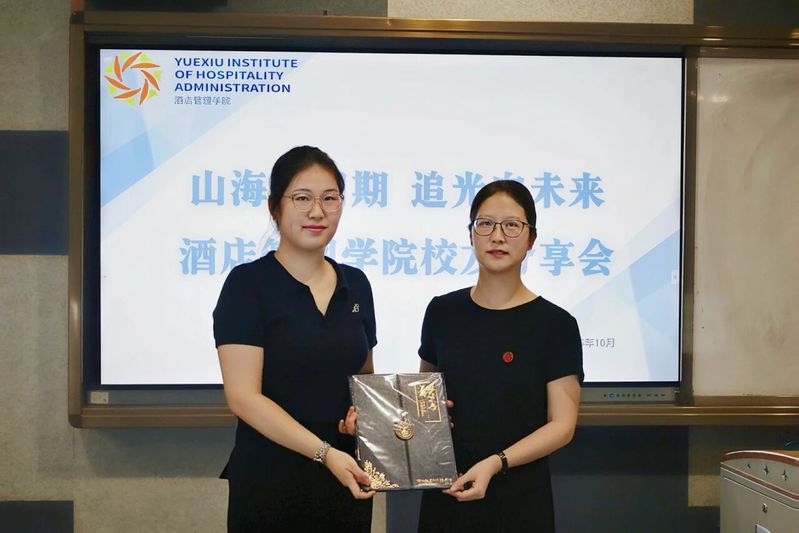 2025年10月15日,针对22级毕业生的校友分享会顺利举行,酒店管理学院党委书记吴伟英、学工办主任毛史明出席。此次分享会主题为“山海有归期 追光向未来”,学院邀请了宁波南苑环球酒店培训主管、优秀校友吕倩倩返校,与在校学子展开深入交流,助力学生明晰发展方向,科学规划职业生涯。