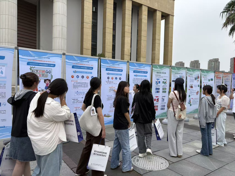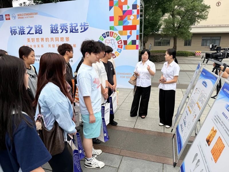 视频与流程介绍结束后,市标准研究院的工作人员分批次引导同学们参观《生活垃圾分类》《2025年世界标准日主题“美好世界的共同愿景:聚焦可持续发展目标17——促进目标实现的伙伴关系”》《标准化科普知识展——标准化发展历程》等系列展板并展开讲解。