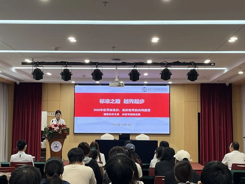 致辞环节后,现场播放了标准化主题科普视频,工作人员同步介绍了本次科普活动的流程。直观的视频展示与清晰的流程讲解,让在场师生对“标准化”的理解从概念走向具象,进一步建立了对标准知识的认知框架。