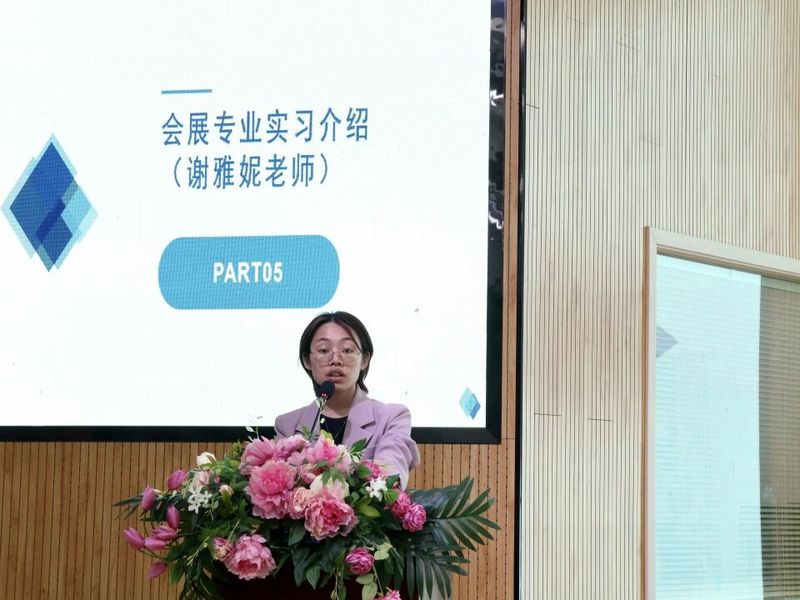 最后,由会展系主任谢雅妮老师和酒管系主任李国英老师分别对专业实习和双选会安排进行分享与介绍。
