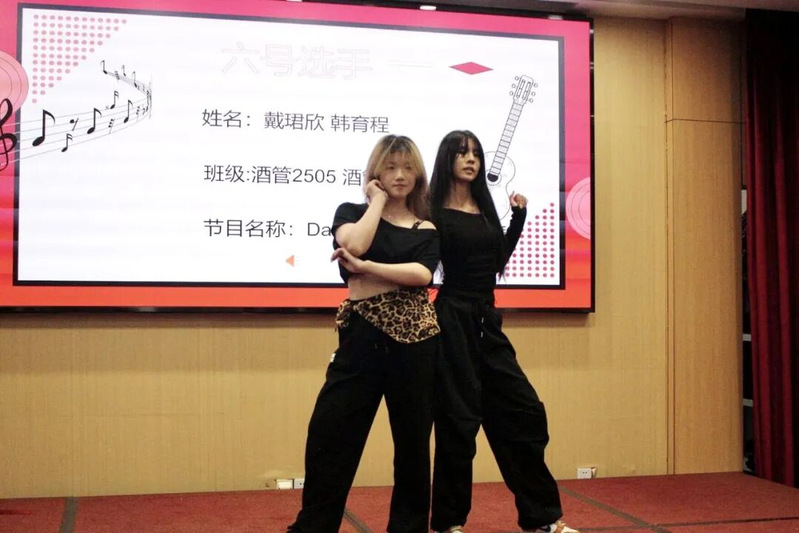 收官时刻,活力拉满!由酒店管理2505班的戴珺欣同学和酒店管理2502班的韩育程同学为我们带来双人舞《dance medley》,每一个节拍都点燃激情,每一个转身、跳跃与手势,都迸发着极致张力与美感。灯光流转,身影交错,掌声与欢呼此起彼伏,为这场赛程画上了圆满又震撼的句号,让激情与感动久久回荡。