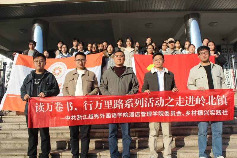 青春赋能共富,实践书写担当。2025年11月21日下午,浙江越秀外国语学院酒店管理学院乡村振兴实践社走进绍兴市诸暨市岭北镇,开展“读万卷书,行万里路”系列实践活动。党员师生代表与实践社社员携手参与,通过多元实践形式探寻岭北镇共同富裕路径,让青春力量在乡村振兴的广阔天地中彰显价值,为推动地方发展注入青年动能。
