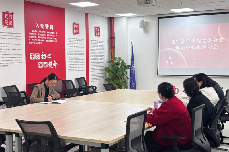 2025年11月28日下午,中共越秀酒店管理学院党委委员会议暨理论学习中心组学习会召开。学院党委书记吴伟英主持会议,学院党委委员、各支部书记参加学习。